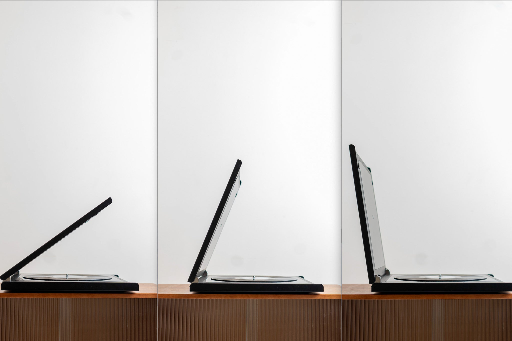 When not in use, M2 can be stored upright. Its rigid geometry and balanced base keep it stable while reducing footprint in your setup.