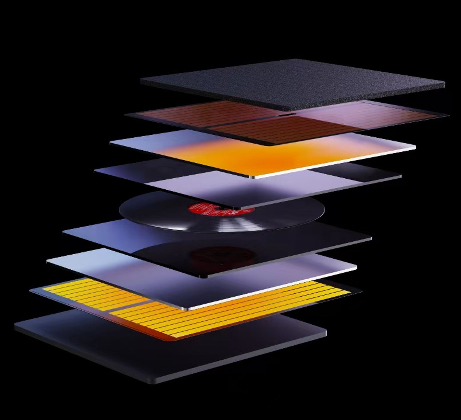 This layer in direct contact with the vinyl — is chosen for its exceptional dimensional flatness and minimal thermal expansion. It deforms only 0.0025 mm between -50°C and 600°C, ensuring the record remains perfectly supported throughout the heating and cooling cycle. Its engineered micro-honeycomb structure on the underside enhances vertical thermal resistance, ensuring even heat distribution with no risk of surface hotspots.